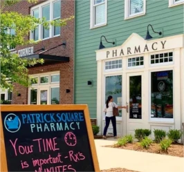 |  Patrick Square Pharmacy Ongoing Pharmacist-owned Patrick Square Pharmacy offers prescription medications, adult immunizations and help navigating the complex world of medications, insurance and co- pays with friendly expertise. All with prices comparable to big box stores ‑ plus curbside service and free delivery within three miles. |